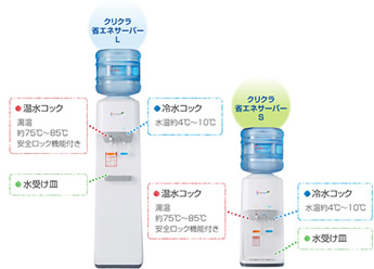 クリクラサーバーは、SとLの、床置きタイプと卓上タイプの2種類が用意されています。